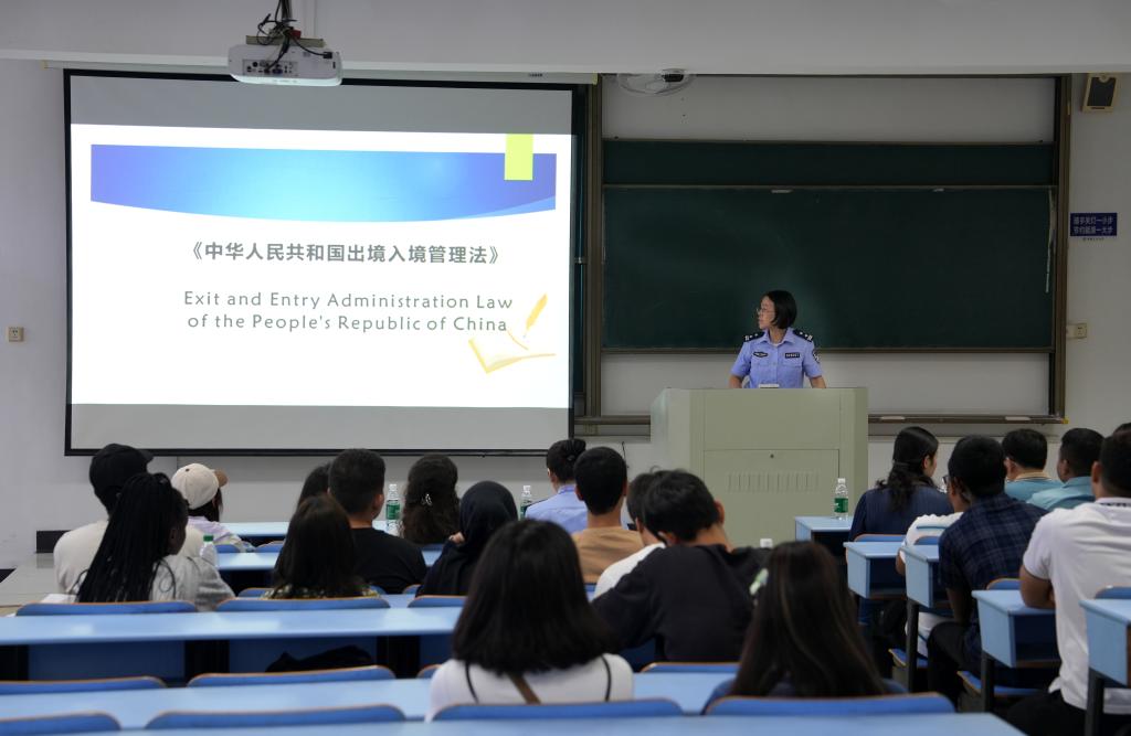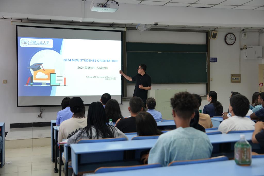 迎新结束后,国际教育学院还组织开展了丰富多彩的入学教育活动。张侃敏老师向学生们讲述了我校留学教育的发展历史与成就,重点介绍了学校的各项日常管理规定、医疗保险、校园活动等。肖旭老师向学生们介绍了我校留学生学籍管理规定。学院还邀请了市公安局出入境管理支队杨理警官、市公安局雨山分局治安大队邓大军警官、向山派出所张红枫警官,从日常校园安全、出入境法律法规、治安管理条例、防非法就业、防范电信诈骗等方面为留学生开展了全面系统的宣讲。入学教育期间,学院还完成了学生手册发放、新生心理健康普查与安全责任承诺书的签署工作。