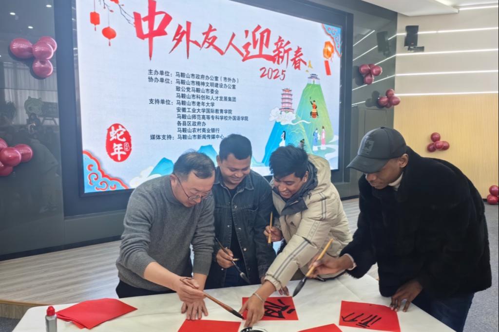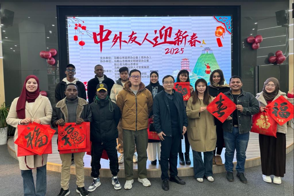 2025年新春佳节来临之际,为了帮助留学生更好地感受新年气象,增进留学生对中华传统文化的理解与认同,促进中外文化交流,1月17日,国际教育学院积极与马鞍山市相关单位联络对接,组织留学生前往马鞍山市青年创新创业园参加“2025年中外友人迎新春”活动。国际教育学院留学生同外资企业代表、外籍教师等100余名中外人士欢聚一堂、共度春节。学院副院长樊永刚出席活动。