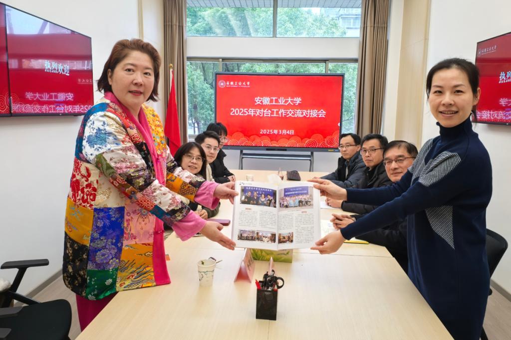 3月4日,我校举办对台工作交流对接会。台湾淡江大学华东校友会会长邱素蕙、马鞍山冠德电子科技有限责任公司总经理特助黄郁婷等一行四人来校交流。我校港澳台事务办公室主任曹瑞斓、校友处处长孙晓斌、材料科学与工程学院院长柳东明、机械工程学院院长刘庆运等出席会议。
