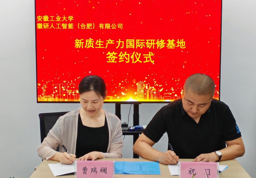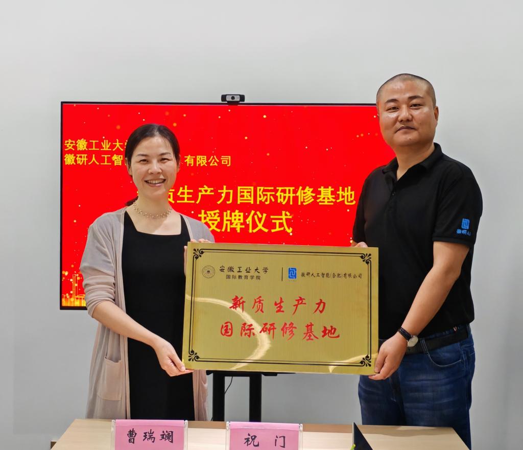座谈结束后,我校国际教育学院与徽研人工智能(合肥)有限公司举行了新质生产力国际研修基地签约及授牌仪式。(撰稿:陈国欢 审核:曹瑞斓 王宇航)