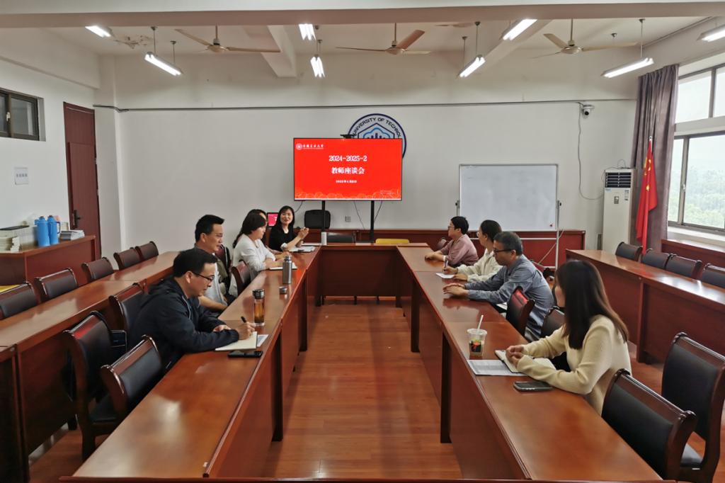 教师座谈会上,留学生相关教学院部专业负责人及教师代表结合教学工作实际,就师生沟通交流、学生学风学纪、课堂教学内容等方面进行交流探讨。教师代表普遍反映,在国际教育学院对留学生学风考勤的严格管理下,学生学习态度明显改善,积极性显著提高,多位教师对留学生的进步给予表扬。与会人员还就教育教学内容与形式创新及课程思政建设进行了深入讨论。