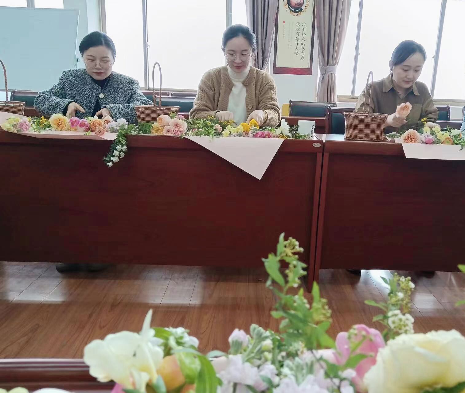 3月8日下午,国际教育学院在秀山校区606举办“花漾三月,指尖拾趣”庆“三八”花艺沙龙活动。学院全体女教职工欢聚一堂,共同庆祝节日。
