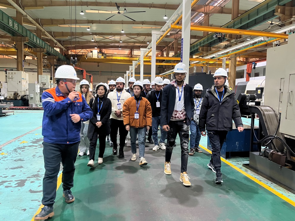 为促进课堂理论与实习实践相结合,11月24日,国际教育学院、商学院组织留学生前往泰尔重工股份有限公司开展校外参观实习。国际经济与贸易、国际贸易学专业共42名本科及硕士留学生参加了此次活动。