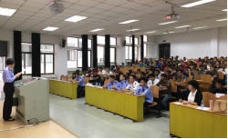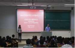 2017年9月25日,安徽工业大学国际教育学院在东阶教104教室举办2017年国际学生法制法规专题教育会。会上,来自韩国、印度尼西亚、哈萨克斯坦、孟加拉、喀麦隆等国远道而来的近130名留学生汇聚一堂,接受第一堂入学教育课。专题会邀请了马鞍山市公安局出入境管理支队杨理、雨山分局邓大军等警官到会为国际学生就法制法规进行教育。校保卫处相关负责人、国际教育学院工作人员参加会议。会议由国际教育学院院长戴俊霞主持。