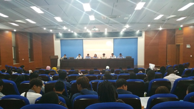 2016年9月19日,安徽工业大学国际教育学院在秀山校区图书馆报告厅举办2016年国际学生入学教育专题会。会上,来自韩国、印度尼西亚、乌兹别克斯坦、巴基斯坦、喀麦隆等国远道而来的近70名留学生汇聚一堂,接受一堂入学教育课。