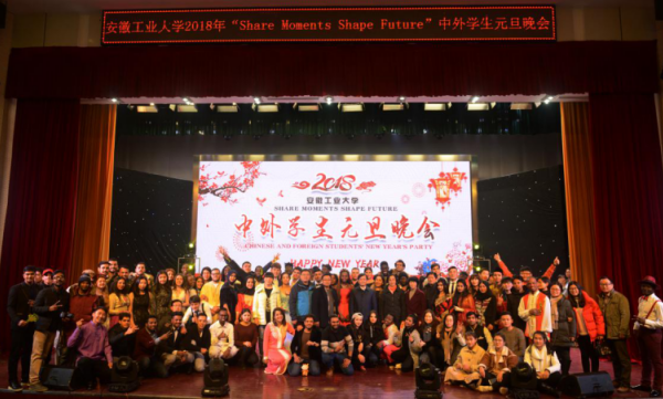 12月28日晚,我校在秀山校区新大学生活动中心举办2018年“Share Moments·Shape Future”(共享此刻·同创未来)中外学生元旦晚会。晚会由国际教育学院和校团委联合举办,校长魏先文、副校长顾明言到晚会现场与各相关部门、学院负责人,留学生授课教师,近四十个国家的留学生,部分中国学生欢聚一堂,共庆2018年元旦的到来。
