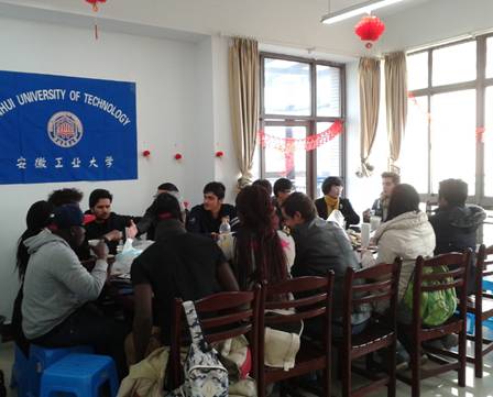12月29日下午,国际教育学院召开留学生迎新年茶话会。2014级留学生,国际教育学院全体人员参加茶话会。