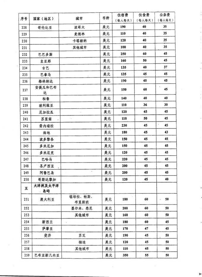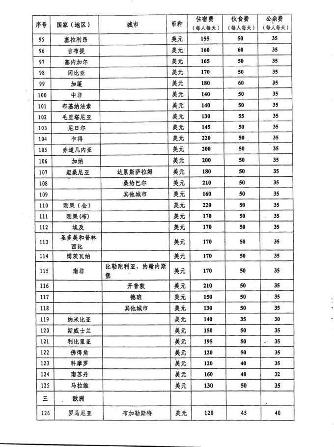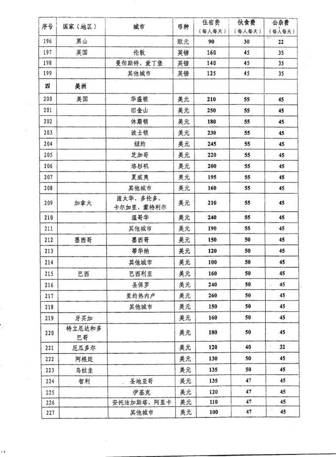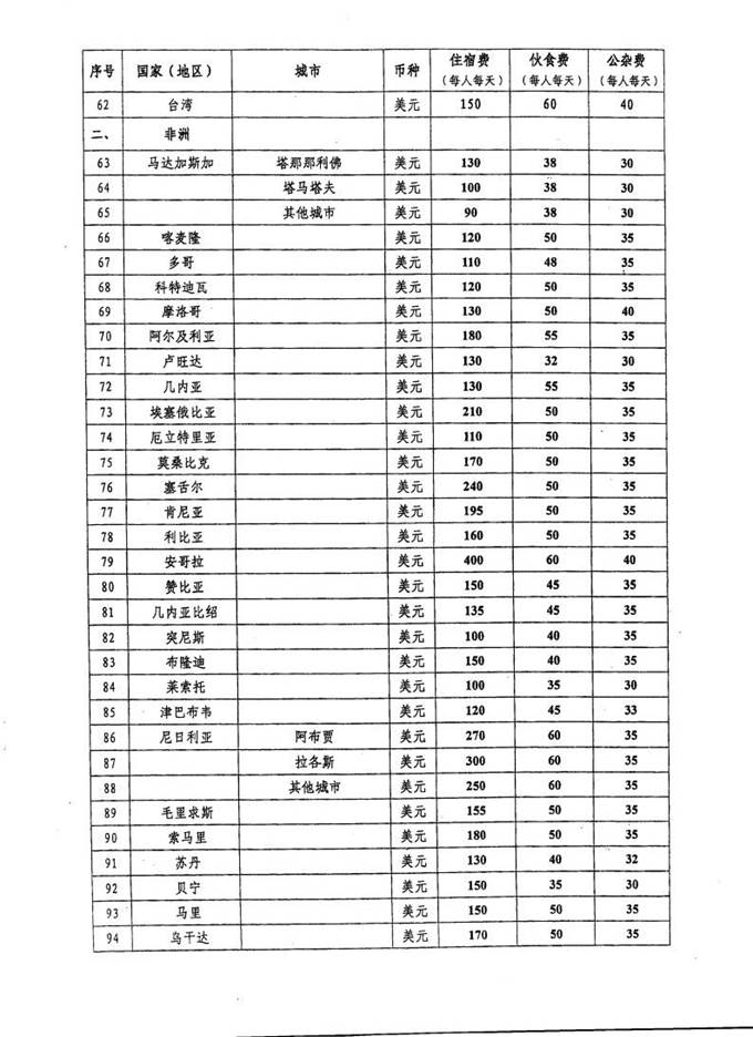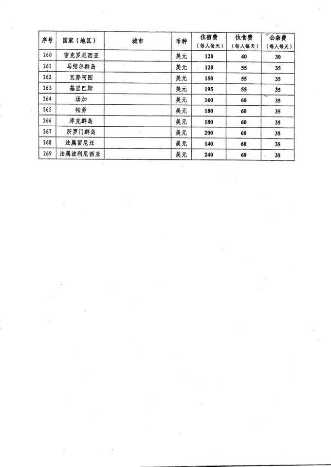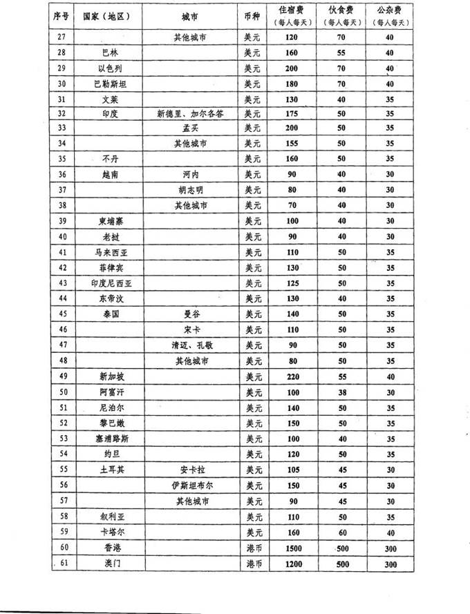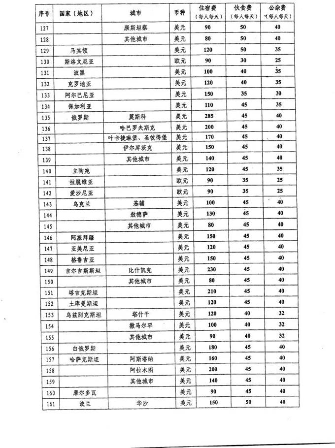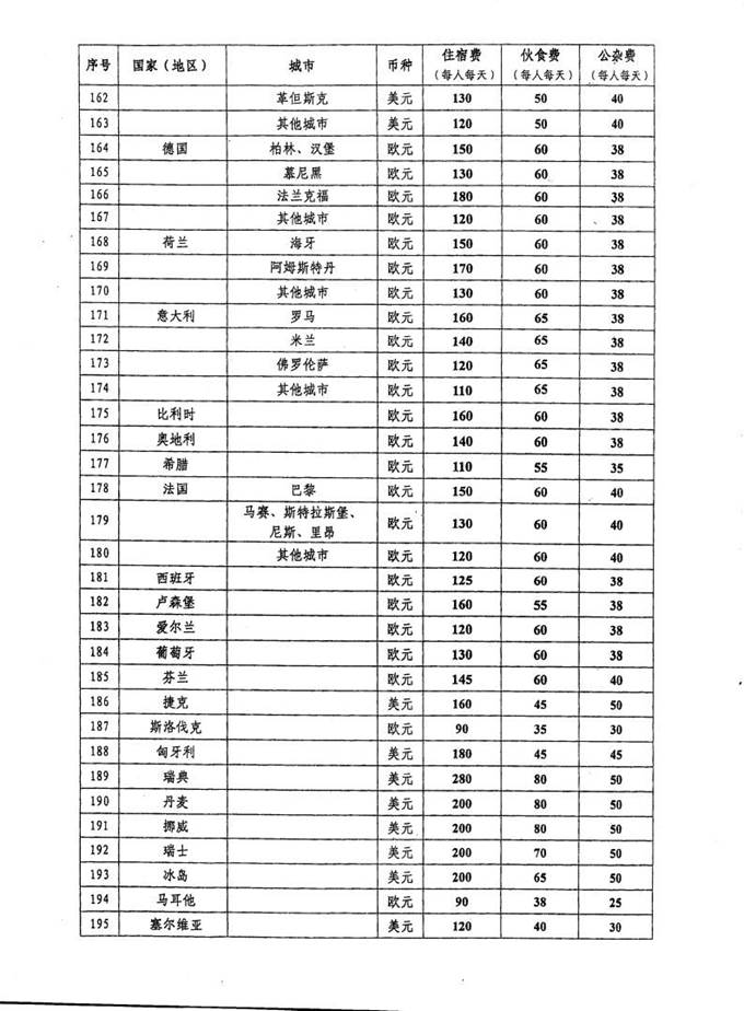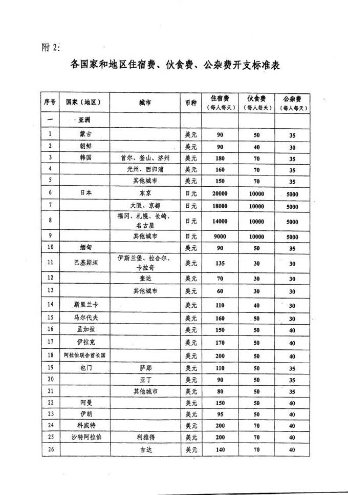 因公出国境住宿费、伙食费、公杂费开支标准(2014)